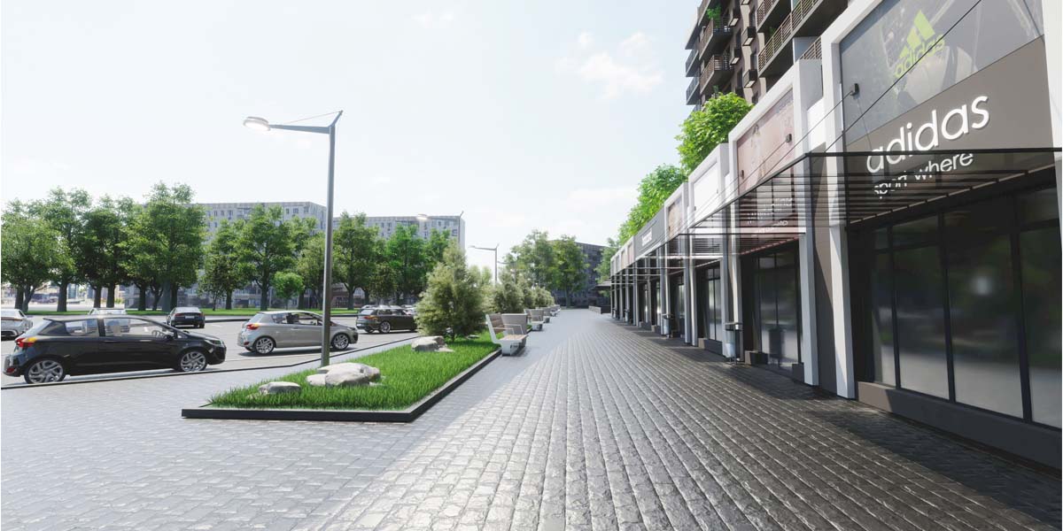 Неподалік комплексу облаштована зелена зона відпочинку, з дитячими майданчиками. У житловому комплексі також передбачені торгові приміщення, цілодобова охорона та відеоспостереження.